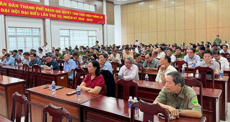 Ảnh: Hội nghị tại hội trường Thành ủy Rạch Giá.