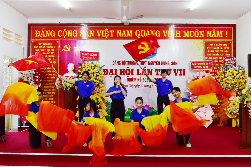 Ảnh: Văn nghệ chào mừng đại hội do học sinh trường Trung học phổ thông Nguyễn Hùng Sơn biểu diễn