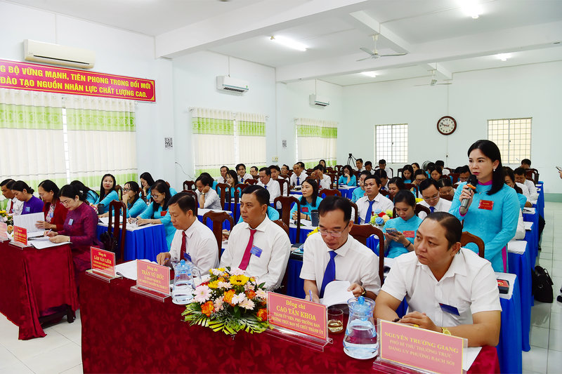 Các chi bộ đã tham luận về “Công tác phát triển đảng viên trong học sinh”. Thông qua công tác tuyên truyền, giáo dục và các hoạt động phong trào để kịp thời phát hiện, tạo nguồn phát triển đảng viên đối với học sinh ưu tú, bổ sung nguồn nhân lực trẻ cho tổ chức đảng và các đoàn thể; Nổi bật về hoạt động chuyên môn là chi bộ 1 lãnh đạo Tổ Ngữ văn nâng cao hiệu quả giảng dạy và học tập của giáo viên và học sinh, góp phần nâng tỷ lệ học sinh tốt nghiệp trung học phổ thông năm 2023 là 98,8% đến năm 2024 là 100%, trong đó phổ điểm trung bình môn ngữ văn của mỗi học sinh là 8,06 điểm, tiếp tục dẫn đầu các trường trung học phổ thông trên địa bàn toàn tỉnh về tỷ lệ học sinh đạt điểm giỏi cao.