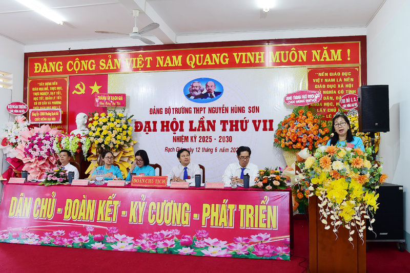 Đại hội đã bầu Ban Chấp hành Đảng bộ Trường Trung học phổ thông Nguyễn Hùng Sơn lần thứ VII, nhiệm kỳ 2025-2030 gồm 11 đồng chí. Tại hội nghị lần thứ nhất, Ban Chấp hành Đảng bộ trường đã bầu Ban Thường vụ gồm 3 đồng chí; đồng chí Nguyễn Thị Mai tiếp tục được tín nhiệm giữ chức Bí thư; đồng chí Nguyễn Đức Ninh, Phó Bí thư, Chủ nhiệm Ủy ban Kiểm tra Đảng bộ Trường Trung học phổ thông Nguyễn Hùng Sơn lần thứ VII, nhiệm kỳ 2025-2030.