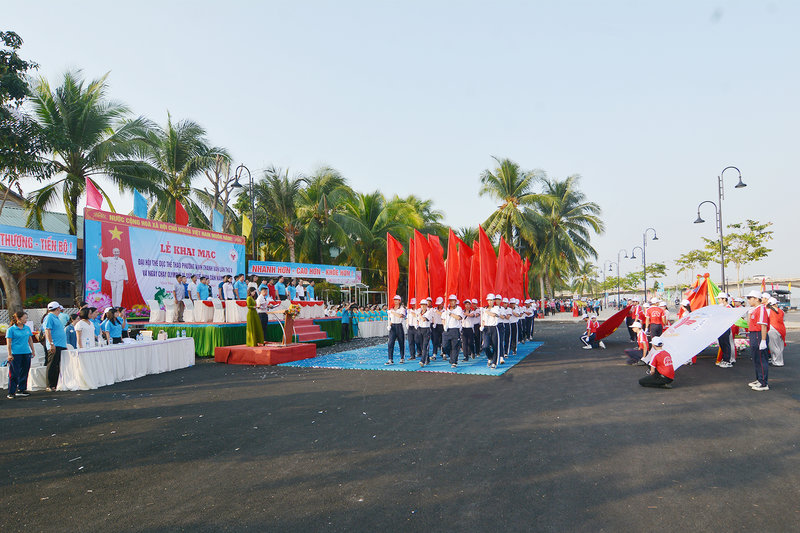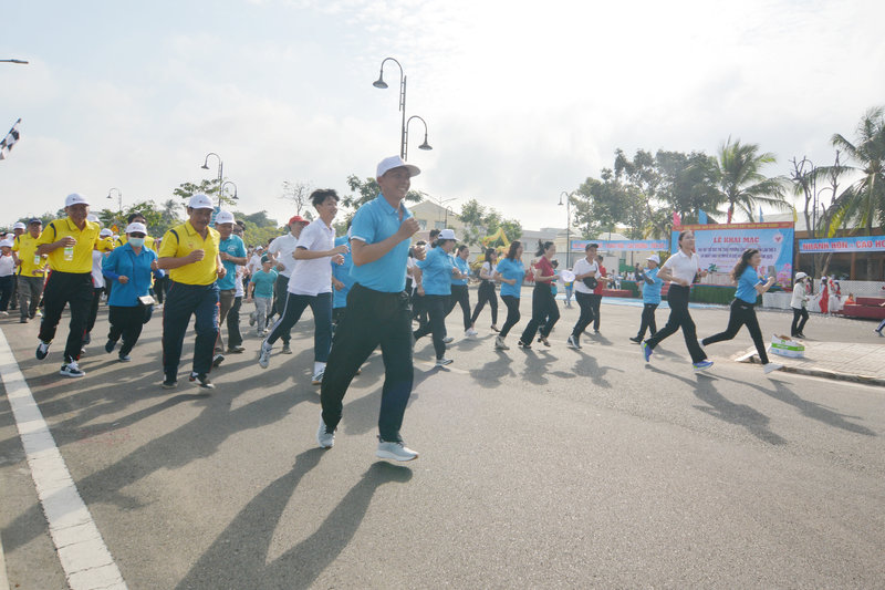 Những hình ảnh về Chương trình đồng diễn sôi động với các tiết mục của Câu lạc bộ Võ thuật Vovinam, Dance Sport trường Kim Đồng, Múa Quạt Câu lạc bộ Dưỡng sinh và Nhảy Aerobic trường Hoa Hồng. Các đại biểu cũng tham gia Ngày chạy Olympic với cự ly 1km và thi đấu kéo co, tạo không khi háo hứng, gắn kết cộng đồng.