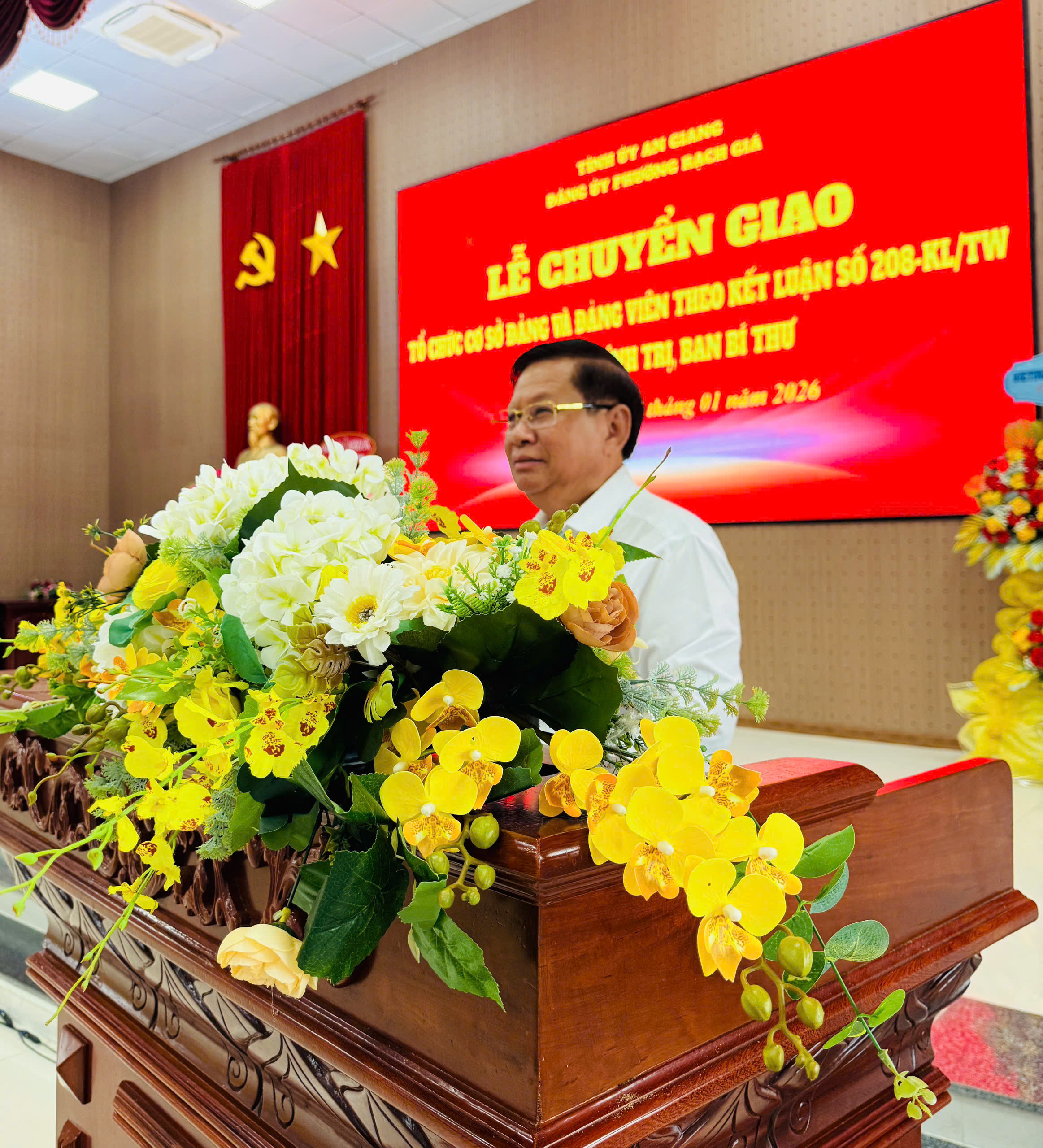 Ngày 27/01/2026, Ban Thường vụ Đảng ủy phường Rạch Giá chủ trì, phối hợp với các đơn vị liên quan tổ chức Hội nghị chuyển giao, tiếp nhận tổ chức đảng và đảng viên theo Công văn số 587-CV/VPTU ngày 09/01/2026 của Văn phòng Tỉnh ủy và Quyết định số 84-QĐ/ĐU của Đảng ủy Chính phủ. Hội nghị do đồng chí Mai Hoàng Khởi, Ủy viên Ban Thường vụ Tỉnh ủy, Bí thư Đảng ủy phường và đồng chí Nguyễn Thị Hoàn Xuân, Phó Bí thư Thường trực Đảng ủy phường chủ trì. Tham dự hội nghị có các đồng chí trong Ban Thường vụ Đảng ủy phường, đại diện các cơ quan tham mưu và lãnh đạo các đảng bộ, đơn vị được chuyển giao.