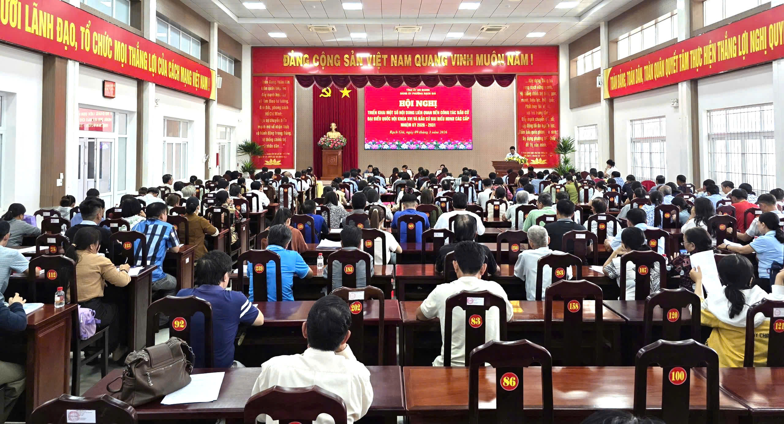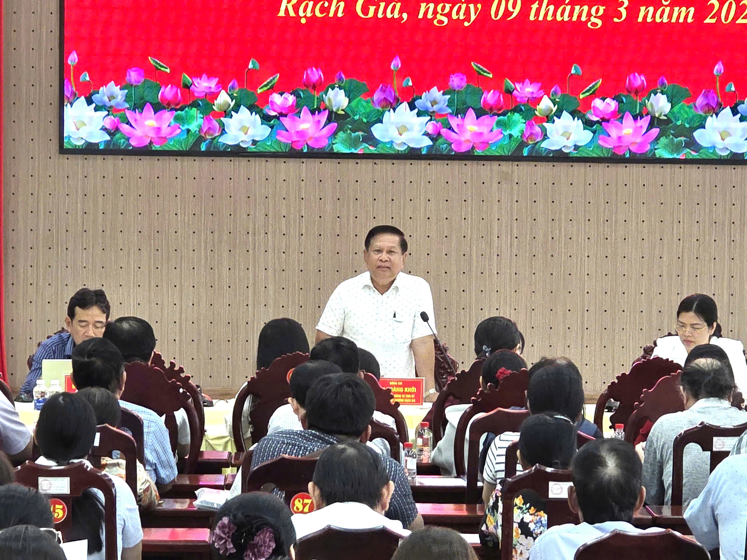 Chiều ngày 09/3/2026, Thường trực Đảng ủy phường Rạch Giá tổ chức hội nghị triển khai các nội dung trọng tâm về công tác bầu cử Đại biểu Quốc hội khóa XVI và bầu cử đại biểu HĐND các cấp nhiệm kỳ 2026-2031. Đồng chí Mai Hoàng Khởi, Ủy viên Ban Thường vụ Tỉnh ủy, Bí thư Đảng ủy phường cùng Ban Thường trực Đảng ủy chủ trì hội nghị.