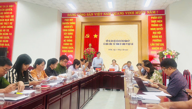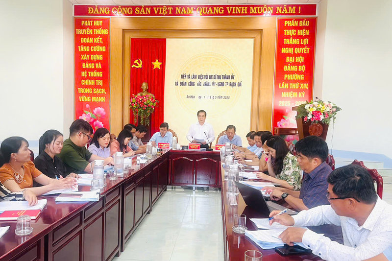 Ảnh: Đồng chí Dương Hồng Tuấn - Thành ủy viên, Bí thư Đảng ủy phường An Hòa đã báo cáo với đoàn công tác, Thường trực Đảng ủy phường cho biết: Trong 2 tháng đầu năm 2025, Đảng ủy, UBND phường An Hòa đã tập trung lãnh đạo, chỉ đạo triển khai thực hiện các nhiệm vụ chính trị và đã đạt được những kết quả quan trọng trên các lĩnh vực kinh tế - xã hội, quốc phòng an ninh và xây dựng Đảng.