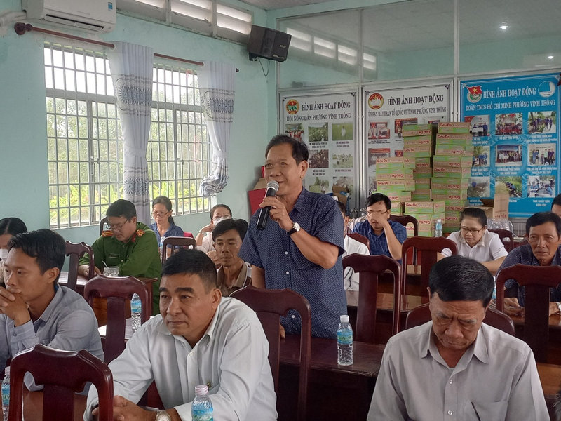 Tại buổi tiếp xúc, cử tri được nghe đại diện đại biểu HĐND phường thông qua kết quả kỳ họp cuối năm 2022. Tại buổi tiếp xúc, cử tri Đinh Quang Nhanh – tổ 03, kp2 kiến nghị cung cấp điện sinh hoạt tuyến kênh 6 Nhường; cử tri Nguyễn Thị Sáu – tổ 01, KP3 đề nghị đơn vị thi công tuyến đường Mạc Thiên Tích cần đẩy nhanh tiến độ để bà con đi lại dể dàng nhất là vào dịp tết Nguyên Đán đến gần; cử tri Lê Thị Lệ - tổ 03, KP6 phản ánh việc máy ko be xúc đất kênh 5 Liêu làm nền nhà gây sạc lở đường lộ; còn cử tri Trần Văn Trọng – tổ 05, KP3 rất muốn biết chương trình Tết Quân – Dân đã làm được những phần việc gì cho bà con, tiến độ như thế nào?