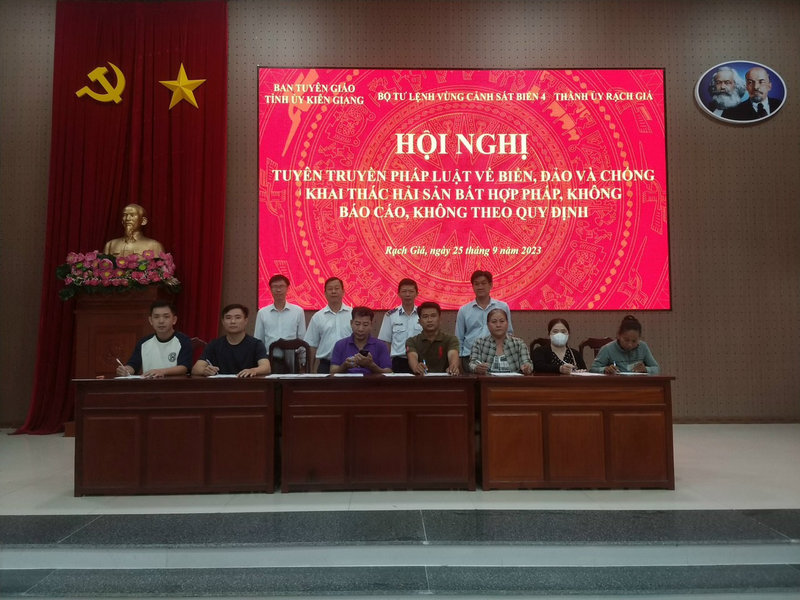Tại Hội nghị, người dân đã được xem phóng sự “quyết liệt ngăn chặn khai thác IUU”; nghe tuyên truyền Luật Thủy sản, Luật Cảnh sát biển, các quy định chống khai thác IUU, công tác chống buôn lậu, gian lận thương mại trên biển.