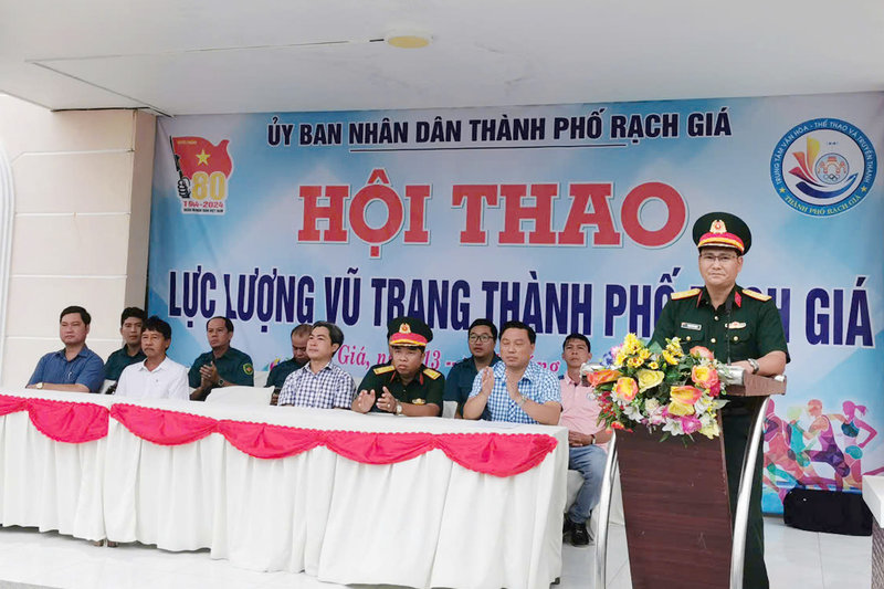 Tham dự hội thao có gần 300 lượt vân động viên của 11 đơn vị đến từ Ban Chỉ huy quân sự các phường, xã và thành phố Rạch Giá. Các vận động viên tham gia thi đấu 4 bộ môn gồm: Bóng chuyền nam, đẩy gậy, kéo co và chạy việt dã.