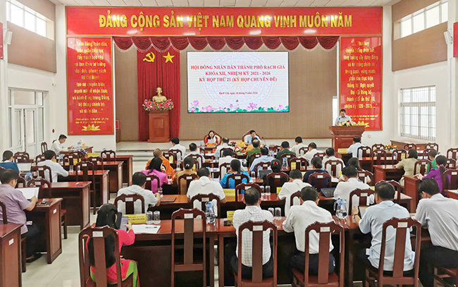 Toàn cảnh kỳ họp thứ 21 Hội đồng nhân dân thành phố Rạch Giá khóa XII,