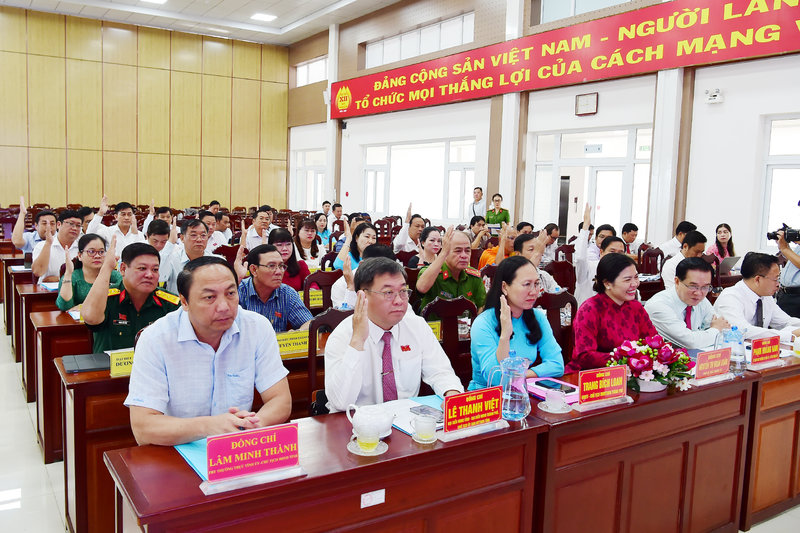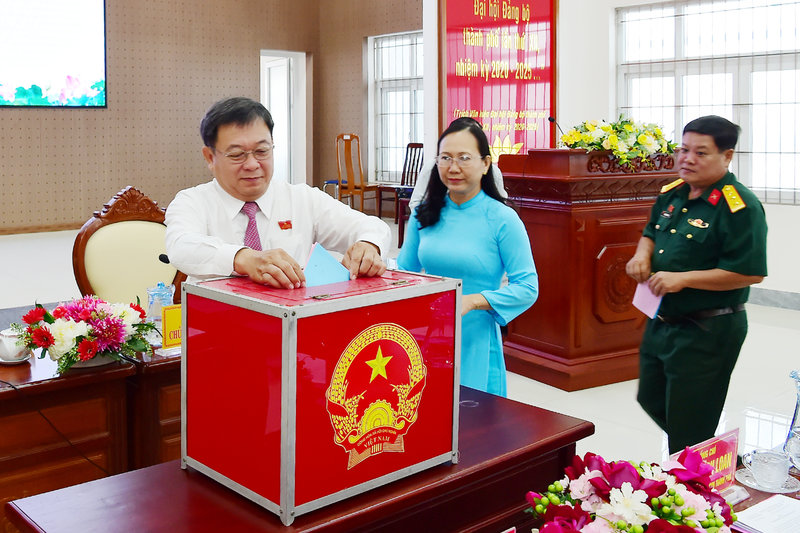 Ảnh: Đại biểu Hội đồng nhân dân thành phố bỏ phiếu bầu chức danh Chủ tịch Ủy ban nhân dân thành phố và Trưởng Ban Kinh tế - xã hội, Hội đồng nhân dân thành phố Rạch Giá khóa XII, nhiệm kỳ 2021-2026