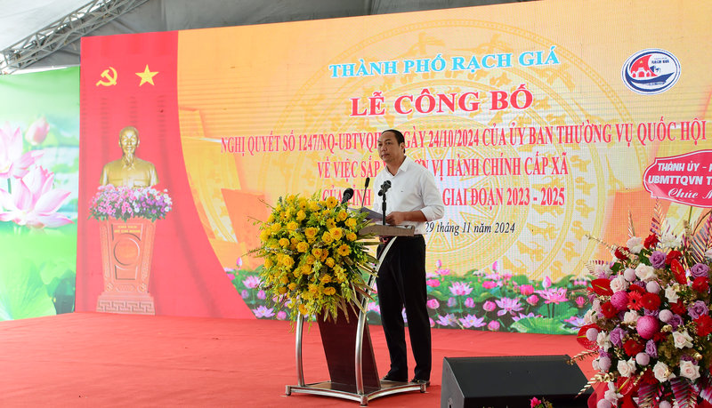 Ảnh: Đồng chí Lâm Minh Thành, Phó Bí thư Tỉnh ủy, Chủ tịch Ủy ban nhân dân tỉnh Kiên Giang phát biểu chỉ đạo tại buổi lễ