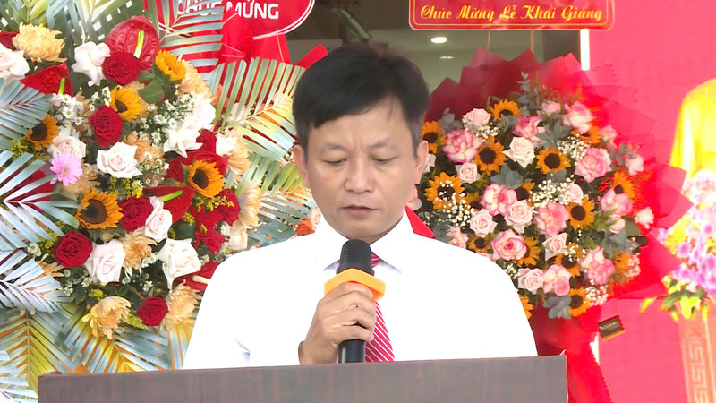 Ảnh: Thầy Nguyễn Thanh Tùng - Hiệu trưởng trường THPT Nguyễn Trung Trực 1, phát biểu tại buổi Lễ