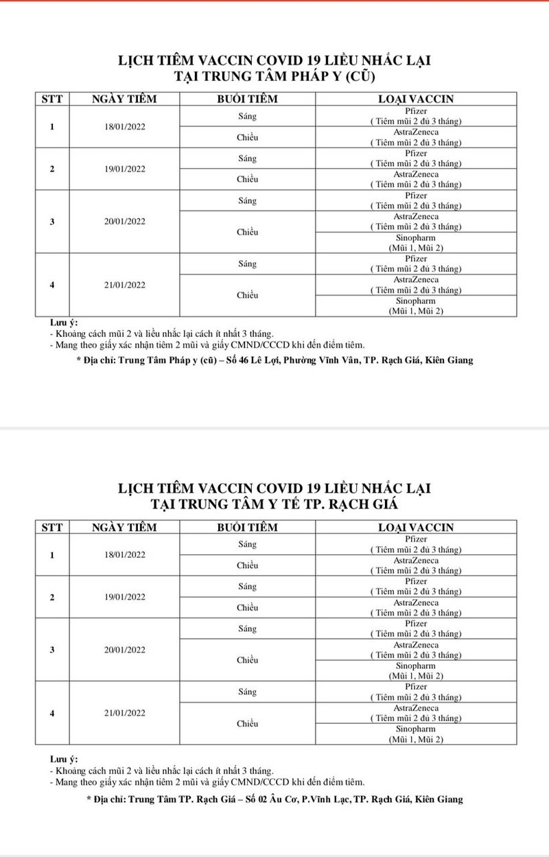 aA Công tác phòng, chống dịch COVID-19 LỊCH TIÊM VACXIN COVID-19 LIỀU NHẮC LẠI TRÊN ĐỊA BÀN THÀNH PHỐ RẠCH GIÁ 16/01/2022, 00:38 Thông báo lịch tiêm Vaccin Covid-19 liều nhắc lại#160;#160;Tập tin đính kèm:LICH TIEM VACXIN.pdf Quay về Chia sẻ Z Copy link thành công Tin khác TĂNG CƯỜNG CÔNG TÁC PHÒNG, CHỐNG DỊCH COVID-19 Công tác phòng, chống dịch COVID-19 20/04/2023 Thông báo Lịch tiêm vắc xin trên địa bàn thành phố Công tác phòng, chống dịch COVID-19 24/10/2022 THÔNG BÁO LỊCH TIÊM VẮC XIN PHÒNG COVID-19 (TỪ NGÀY 17/8/2022) Công tác phòng, chống dịch COVID-19 15/08/2022 THÔNG BÁO LỊCH TIÊM VẮC XIN PHÒNG COVID-19 TẠI TRUNG TÂM PHÁP Y THÀNH PHỐ (TỪ NGÀY 10/8/2022) Công tác phòng, chống dịch COVID-19 10/08/2022 Thông báo lịch tiêm vắc xin Covid-19 (mũi 4) trên địa bàn thành phố Rạch Giá Công tác phòng, chống dịch COVID-19 17/06/2022 Thông báo lịch tiêm vắc xin phòng covid-19 trên địa bàn phường Vĩnh Thanh Công tác phòng, chống dịch COVID-19 11/04/2022 Thông báo tiêm vắc sin phòng Covid-19 trên địa bàn phường Vĩnh Lạc Công tác phòng, chống dịch COVID-19 10/04/2022 Tài liệu tuyên truyền thông tin cần biết về phòng, chống dịch Covid-19 trong trường học Công tác phòng, chống dịch COVID-19 25/03/2022 THÔNG BÁO TIÊM VÉT VẮC XIN MŨI 3 PHÒNG COVID-19 TẠI PHƯỜNG VĨNH BẢO Công tác phòng, chống dịch COVID-19 24/03/2022 THÔNG BÁO TIÊM VẮC XIN PFIXER MŨI 3 PHÒNG COVID-19 Công tác phòng, chống dịch COVID-19 03/03/2022 /lich-tiem-vacxin-covid-19-lieu-nhac-lai-tren-dia-ban-thanh-pho-rach-gia