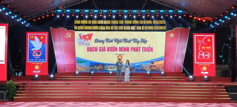 Trong thời lượng 120 phút, các đại biểu và Nhân dân trên địa bàn phường đã được thưởng thức phóng sự trình chiếu với tựa đề “Rạch Giá đồng hành cùng doanh nghiệp vươn mình phát triển” và Chương trình nghệ thuật chào mừng với các tiết mục ca - múa - nhạc đậm đà bản sắc địa phương, ca ngợi Đảng, Bác Hồ, quê hương, đất nước, sự nghiệp đổi mới và phát triển của tỉnh An Giang nói chung và phường Rạch Giá nói riêng; chương trình gồm có 3 phần với các chủ đề: Phần 1 "Mùa Thu Đại Thắng"; Phần 2 "Đất Nước Vươn Mình - An Giang Tầm Cao Mới"; Phần 3 "Rạch Giá Vươn Mình Phát Triển", các tiết mục được dàn dựng quy mô, hiện đại theo dòng lịch sử hào hung của dân tộc, cùng với tiết tấu vui tươi, tạo không khí phấn khởi trong ngày kỷ niệm trọng đại của đất nước, cuối cùng là màn trình diễn bắn pháo hoa thời lượng 15 phút rực rỡ sắc màu tạo niềm tin, phát triển thịnh vượng của phường Rạch Giá.