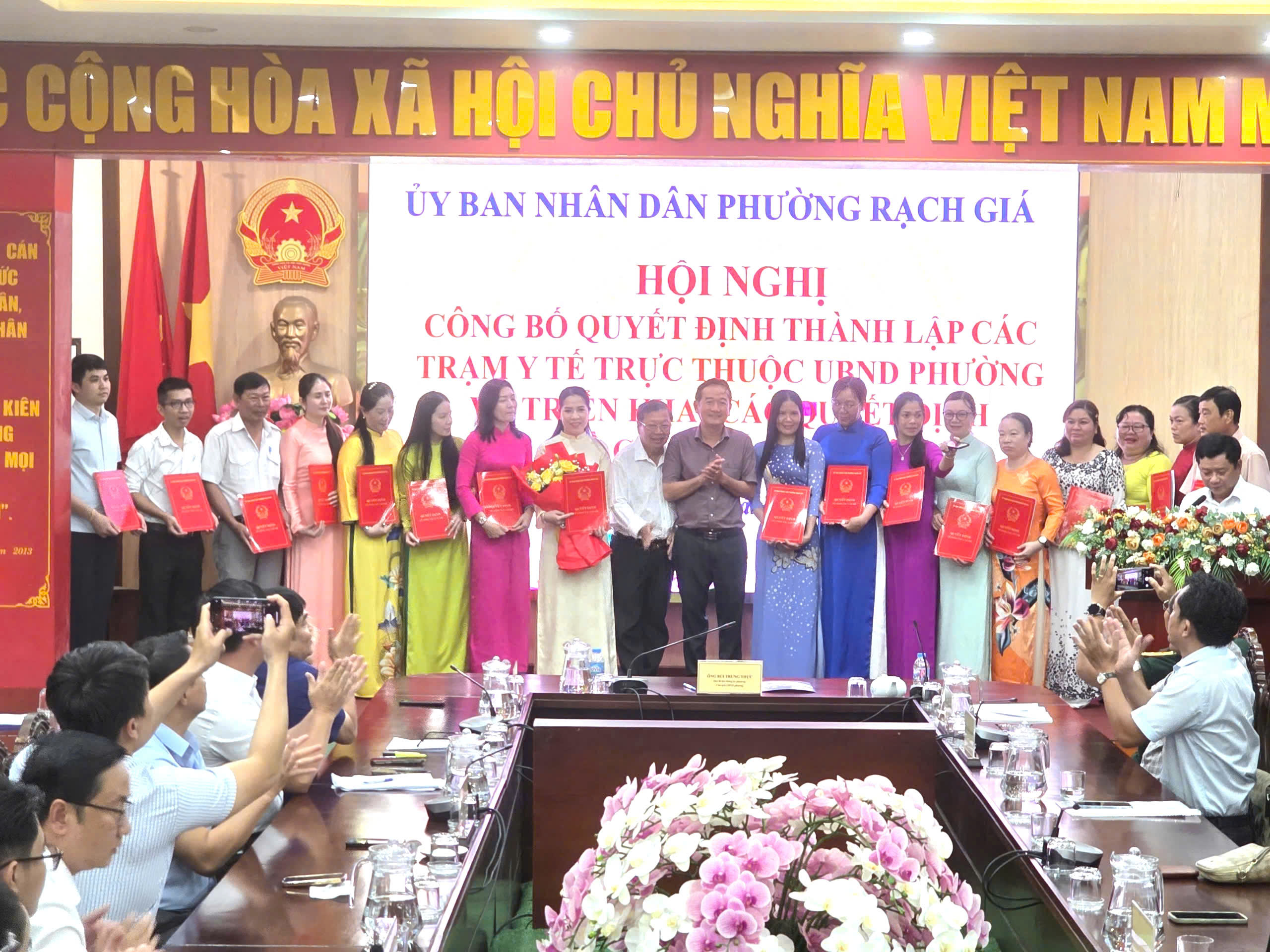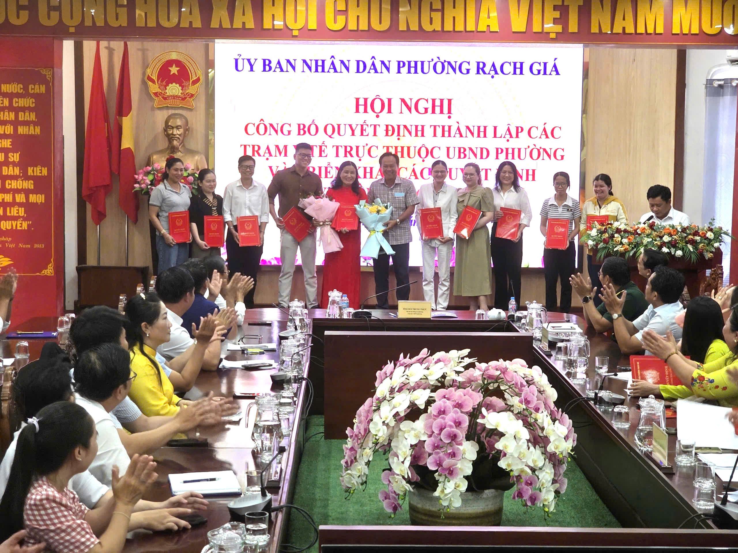 Về công tác cán bộ, UBND phường đã công bố các quyết định điều động và bổ nhiệm nhân sự lãnh đạo. Bà Nguyễn Thị Mỹ Lâm giữ chức vụ Phó Giám đốc phụ trách Trạm Y tế Rạch Giá 1; bà Lâm Thị Liên Châu giữ chức vụ Phó Giám đốc phụ trách Trạm Y tế Rạch Giá 2 và ông Nguyễn Ngọc Lê Hoàng giữ chức vụ Phó Giám đốc phụ trách Trạm Y tế Rạch Giá 3. Thời hạn bổ nhiệm là 5 năm. Đồng thời, hơn 60 nhân sự cũng được điều động, bố trí công tác tại 3 đơn vị mới để đảm bảo vận hành thông suốt.