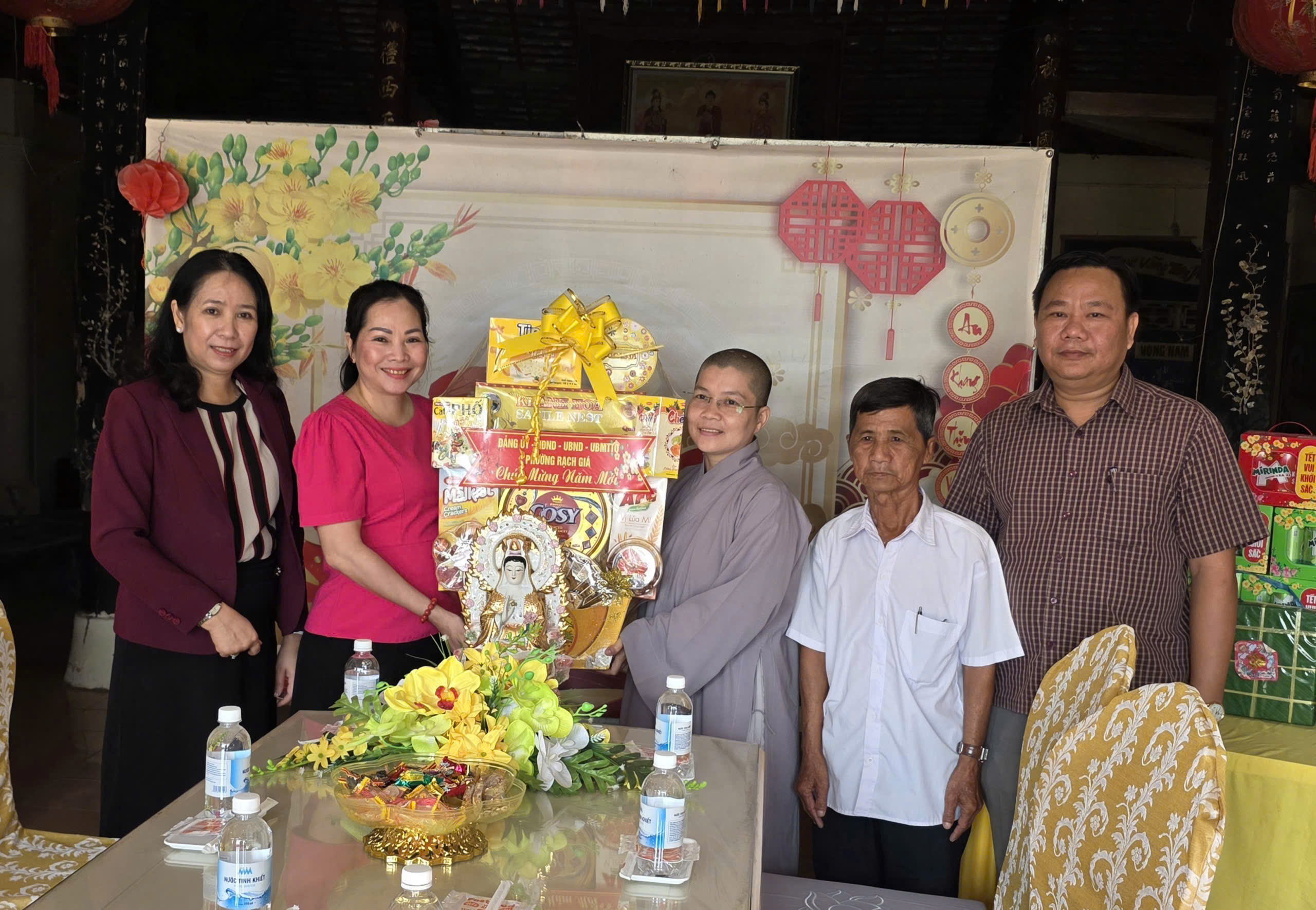 Dịp này, đoàn cũng đã đến thăm 08 cơ sở tôn giáo, thờ tự trên địa bàn, bao gồm: chùa Ngọc Bửu Hương, thánh thất Quang Linh Đàn, chùa Phước Thạnh, chùa Hòa Long, tịnh thất Thanh Quang, giáo xứ Rạch Sỏi, Hưng Thanh Tự và chùa Thôn Dôn. Trưởng đoàn chúc các vị chức sắc, tăng ni, phật tử và bà con giáo dân đón một mùa Xuân an lành, hạnh phúc, tiếp tục thực hiện tốt chủ trương của Đảng, chính sách pháp luật của Nhà nước.
