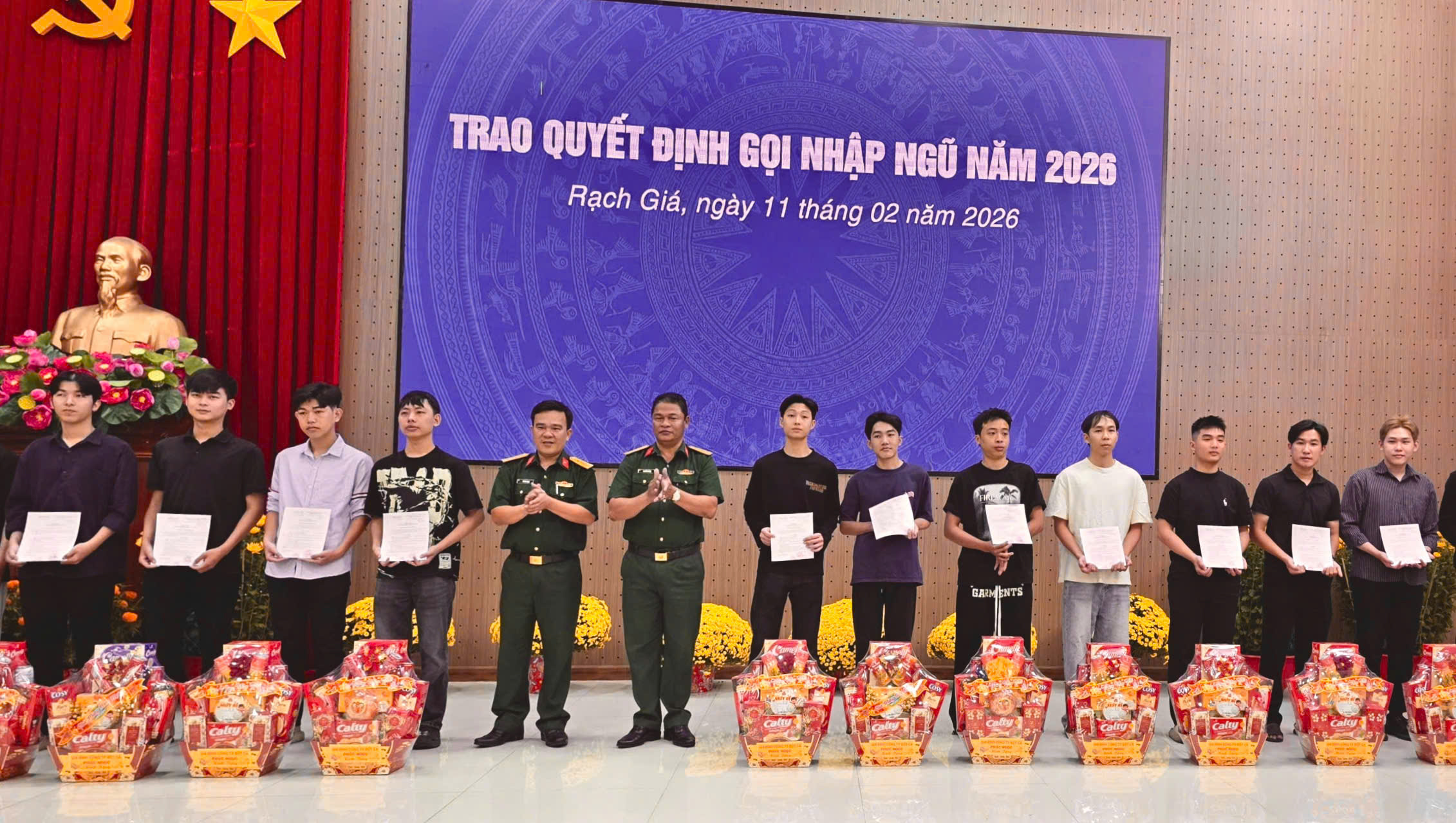 Ngày 11/02/2026, Hội đồng Nghĩa vụ quân sự phường Rạch Giá tổ chức buổi họp mặt trao Quyết định gọi công dân nhập ngũ năm 2026. Đến dự có đồng chí Mai Hoàng Khởi – Ủy viên Ban Thường vụ Tỉnh ủy, Bí thư Đảng ủy phường; Thượng tá Nguyễn Văn Dệ – Phó Tham mưu trưởng Bộ Chỉ huy Quân sự tỉnh An Giang; Trung tá Tổ Hải Phong – Chính ủy Ban Chỉ huy Phòng thủ khu vực 6 – Ngọc Chúc, cùng đại diện các ban, ngành, đoàn thể, trưởng khu phố, lực lượng chức năng, 180 công dân trúng tuyển nghĩa vụ quân sự và gia đình.