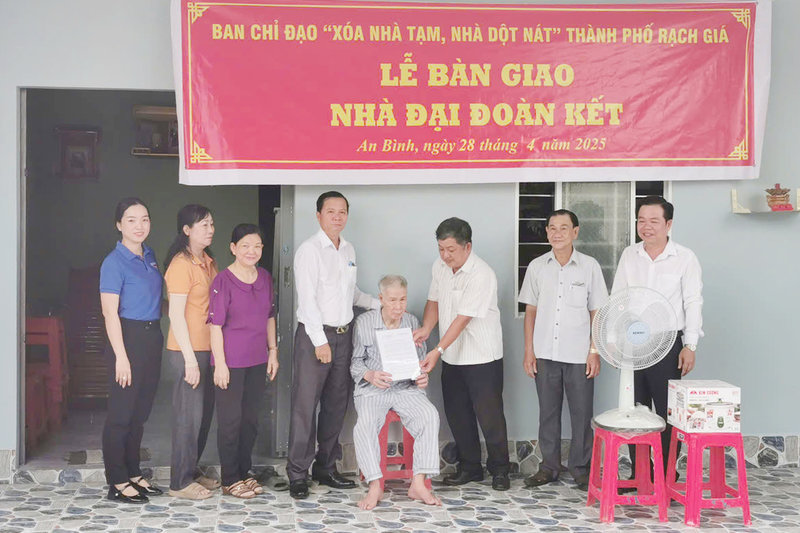 Đến cuối tháng 4 năm nay, thành phố Rạch Giá đã hoàn tất việc cất mới và sửa chữa 81 căn nhà “Đại Đoàn Kết” cho hộ nghèo, hộ cận nghèo và hộ có hoàn cảnh khó khăn về nhà ở với tổng trị gần 4 tỷ đồng và 510 ngày công lao động của các lực lượng dân phố, dân phòng và công an, quân sự địa phương. Phong trào đã có sức lan tỏa trong cộng động, huy động được sự tham gia của cả hệ thống chính trị từ thành phố đến phường, xã./.