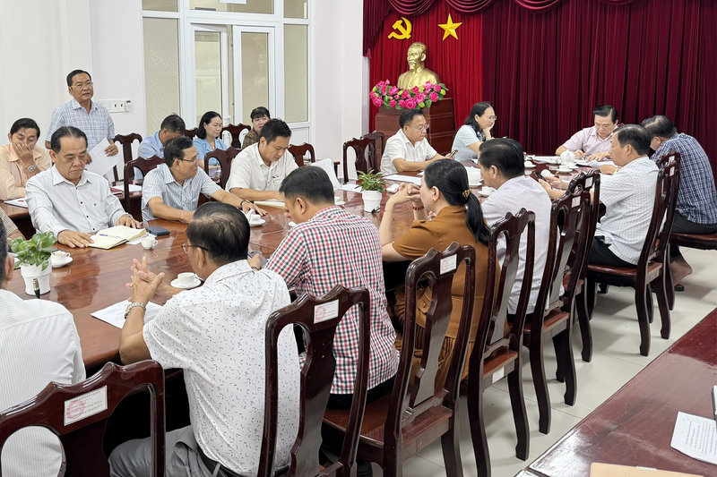 Ảnh: Cuộc họp Ban Chỉ đạo nghe phường, xã báo cáo về tình hình rà soát, khảo sát thực trạng nhà tạm, nhà dột nát trên địa bàn.