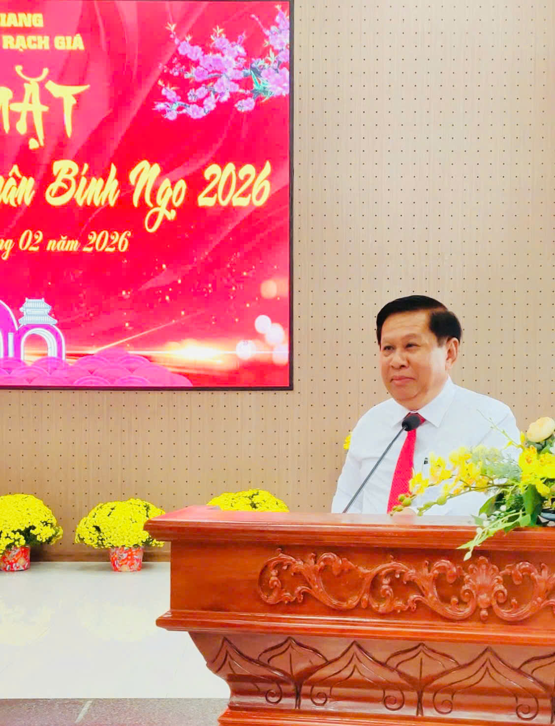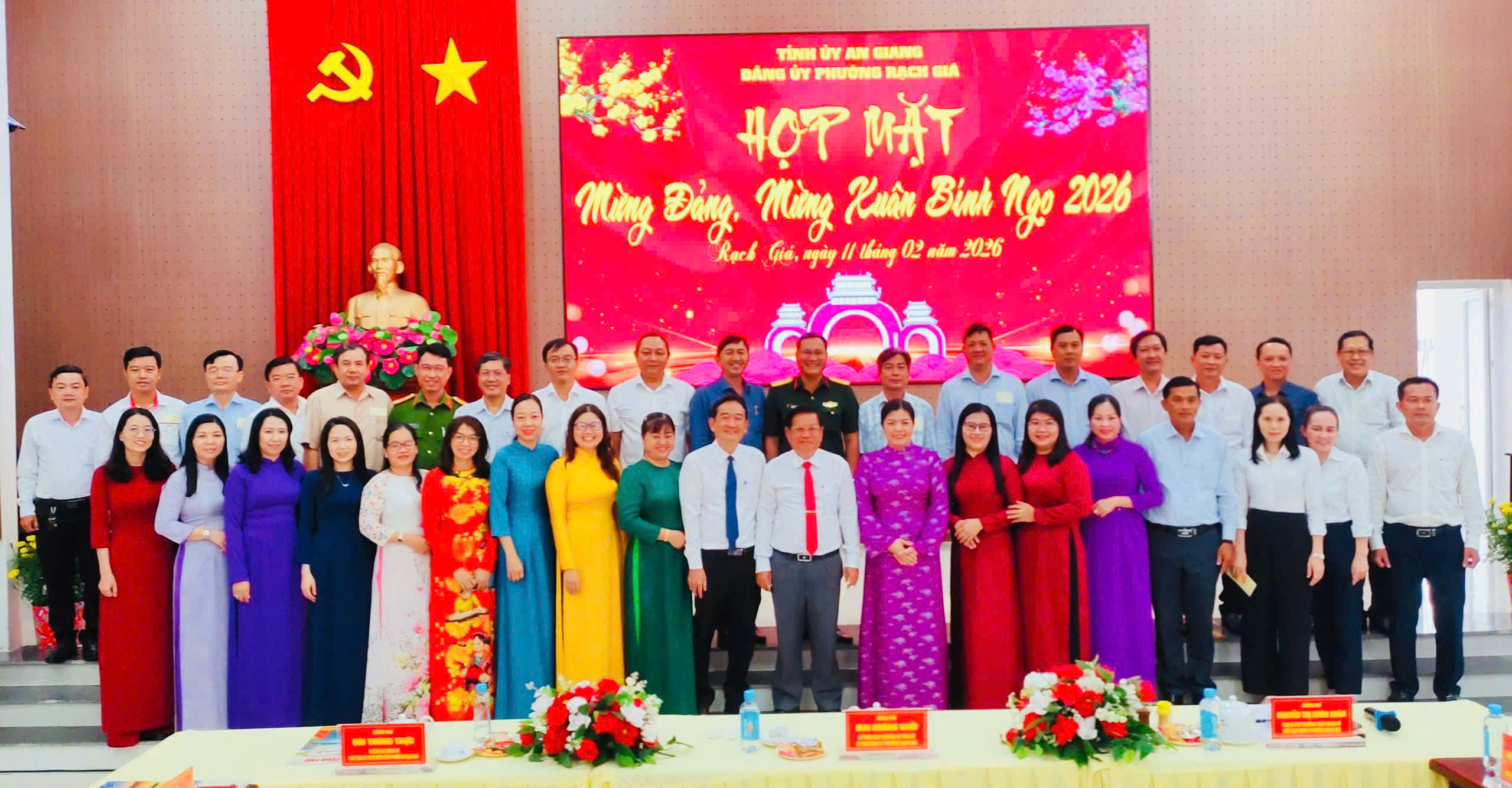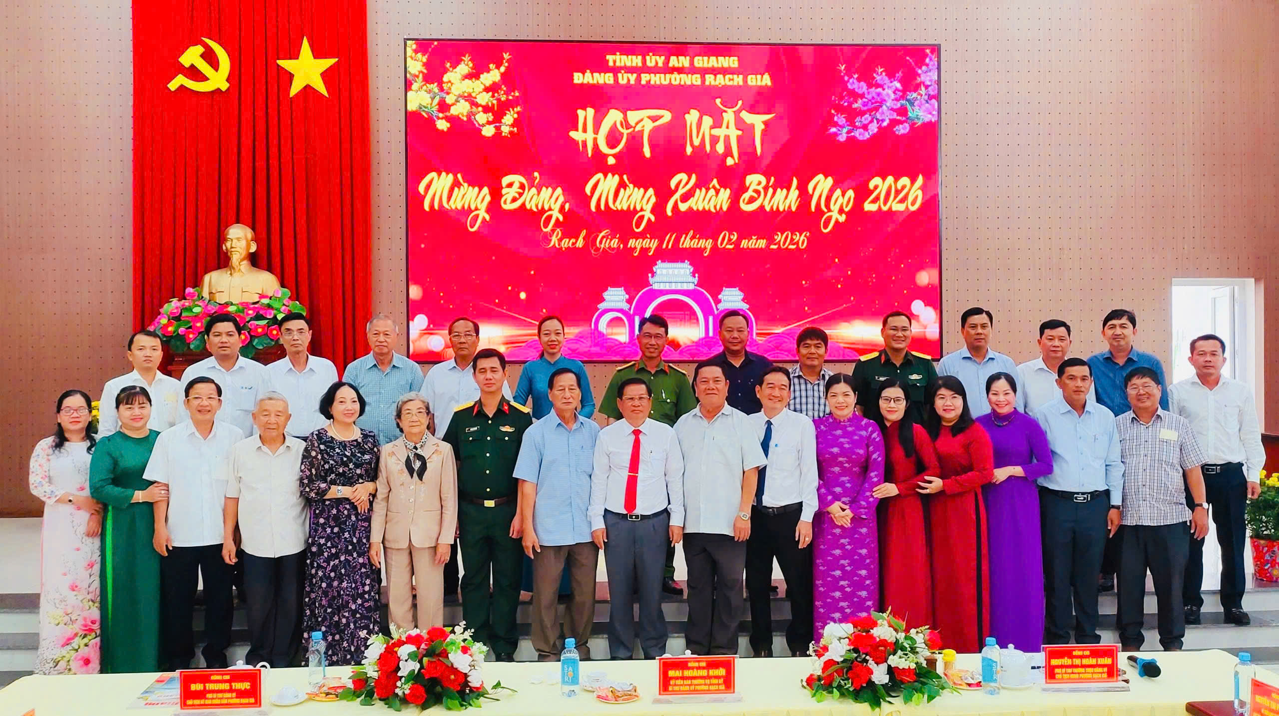 Ngày 11/02/2026, Đảng ủy, Hội đồng nhân dân, Ủy ban nhân dân, Ủy ban Mặt trận Tổ quốc Việt Nam phường Rạch Giá tổ chức buổi họp mặt Mừng Đảng quang vinh tròn 96 năm và Mừng Xuân Bính Ngọ 2026. Đồng chí Mai Hoàng Khởi, Ủy viên Ban Thường vụ Tỉnh ủy, Bí thư Đảng ủy phường; đồng chí Nguyễn Thị Hoàn Xuân, Phó Bí thư Thường trực Đảng ủy, Chủ tịch HĐND phường; đồng chí Bùi Trung Thực, Phó Bí thư Đảng ủy, Chủ tịch UBND phường cùng chủ trì hội nghị