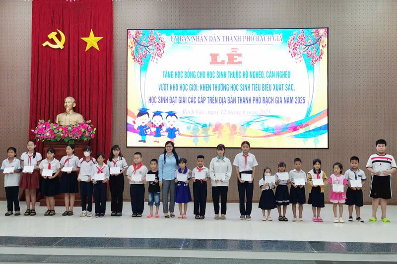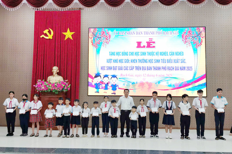 Năm nay, toàn thành phố Rạch Giá có gần 500 em học sinh thuộc hộ nghèo, cận nghèo vượt khó học giỏi; khen thưởng học sinh tiêu biểu xuất sắc, học sinh đạt giải thưởng các cấp vinh dự được biểu dương, khen thưởng và nhận học bổng từ nguồn kinh phí của Ủy ban nhân dân thành phố, của Hội khuyến học thành phố Rạch Giá và Hội khuyến học tỉnh Kiên Giang, nhằm khuyến khích, động viên các em có thêm niềm vui, nghị lực trong cuộc sống, giúp các em an tâm trong học tập, vượt khó vươn lên, sống tốt với gia đình và xã hội.