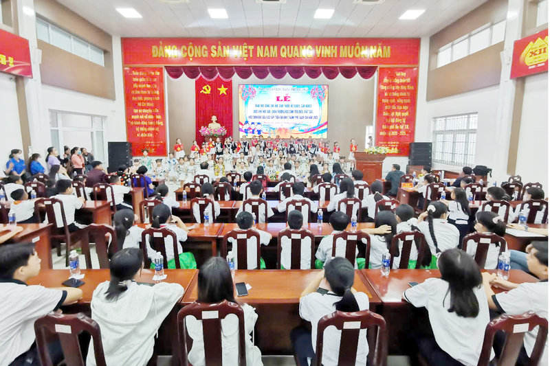 Ảnh: Các em được thưởng thức chương trình văn nghệ chào mừng do học sinh các trường trên địa bàn thành phố trình diễn