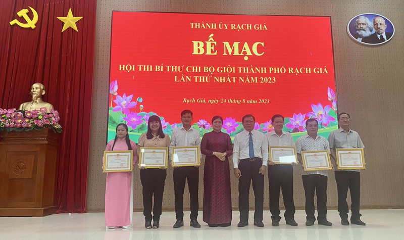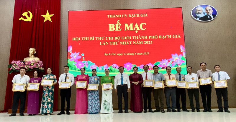 Sau 02 phần thi sôi nổi, hấp dẫn, Ban Giám khảo, Tổ Thư ký đã làm việc công tâm, khách quan, đánh giá đúng khả năng của các thí sinh. Ban Tổ chức đã trao giải tập thể cho 06 đảng bộ (gồm 01 giải nhất, 01 giải nhì, 01 giải ba và 03 giải khuyến khích) và 13 giải cá nhân (gồm 01 giải nhất, 02 giải nhì, 03 giải ba và 07 giải khuyến khích). Trao Chứng chỉ cho 5 Bí thư chi bộ trực thuộc Đảng ủy các phường, xã trên địa bàn thành phố Rạch Giá đạt danh hiệu "Bí thư chi bộ giỏi"./.