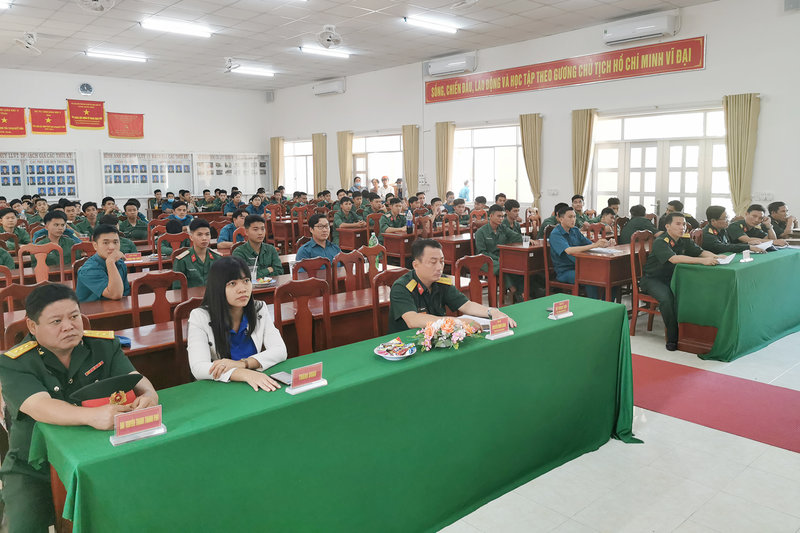 Ảnh: Trung tá Võ Thành Tiến – Ủy viên Ban Thường vụ Thành ủy, Chỉ huy trưởng Ban Chỉ huy quân sự thành phố Rạch Giá nói chuyện với quân nhân xuất ngũ tại hội trường Ban Chỉ huy quân sự thành phố Rạch Giá.
