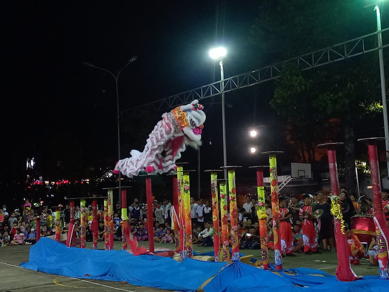 Có 13 đoàn Lân - Sư - Rồng trong và ngoài tỉnh tham gia biểu diễn như đoàn Lân – Sư – Rồng, Đình Nguyễn Trung Trực, TP Rạch Giá; Tình Nghĩa Đường, Nhà Thiếu Nhi Kiên Giang; LONGYANG, Châu Đốc - An Giang; Rồng xóm bún, Tam Kỳ - Quảng Nam; Tiến Dũng - Kiên Giang; EIGHTEEN – Đà Nẵng; Tài Anh Đường – thành phố Long Xuyên; Châu Phú – An Giang; Hưng Sũi – TP. Sóc Trăng; đền thờ Đỗ Công Tường, tỉnh Đồng Tháp; Vũ Miên – TP Đà Nẵng; Trung Thiếu Niên – TP Châu Đốc; Miếu Bảy Bà, TP. Châu Đốc - An Giang. Các đơn vị sẽ biểu diễn với ba nội dung như: Trống Hội; Lân Địa bửu; Mai Hoa Thung, Rồng Chín Khúc.