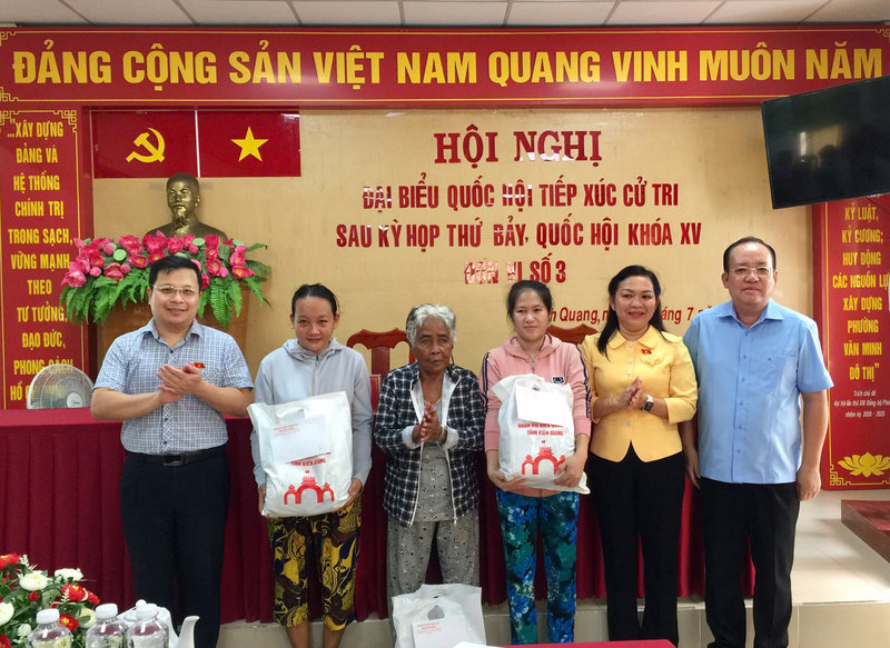 Tại buổi tiếp xúc, cử tri Phạm Hữu Thanh, Khu phố Lý Thái Tổ, phường Vĩnh Quang có ý kiến về những quy định cấp, đổi biến số xe gắn máy gây khó khăn cho người dân; thành phố làm chợ tạm Nông hải sản để những người mua bán nhỏ tập trung mua bán tại đây; sửa chữa và xử lý hệ thống thoát nước tuyến đường Điện Biên Phủ; mức chi hổ trợ cho lực lượng tham gia Bảo vệ ANTT ở cơ sở quá thấp; việc chi trả lương, phụ cấp cho cán bộ ở khu phố và ấp chưa thỏa đáng. Cử tri phường Vĩnh Quang tiếp tục có ý kiến đề nghị Nhà nước tăng cường công tác quản lý giá, vì khi lương tăng thì giá cả hàng hóa cũng tăng theo; việc bảo hiểm y tế tăng giá gây khó khăn cho người dân, nhất là những người có thu nhập thấp.