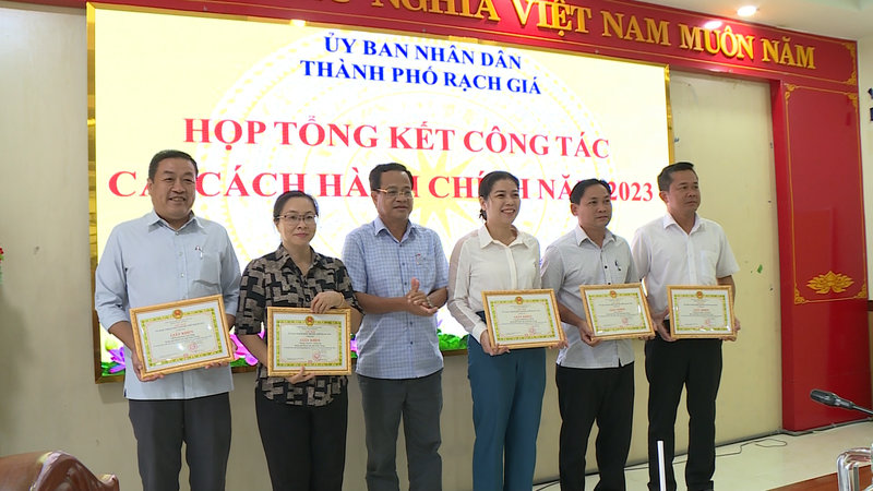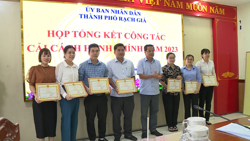 Dịp này, Ủy ban nhân dân thành phố tặng giấy khen cho 06 tập thể và 11 cá nhân có thành tích xuất sắc trong phong trào thi đua cải cách hành chính năm 2023./.