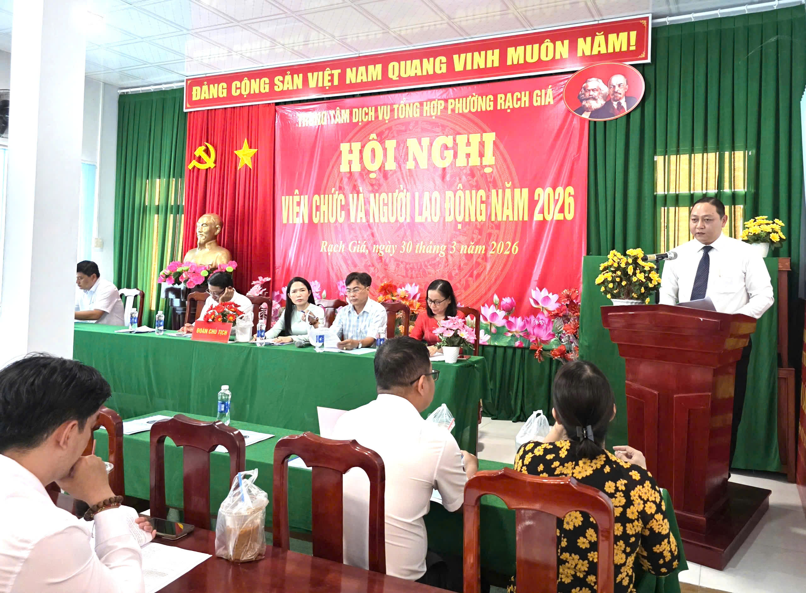 Vừa qua Trung tâm Dịch vụ tổng hợp phường Rạch Giá tổ chức Hội nghị viên chức và người lao động năm 2026 nhằm đánh giá kết quả thực hiện nhiệm vụ quý I, đồng thời đề ra phương hướng, nhiệm vụ trọng tâm cho những tháng còn lại của năm.