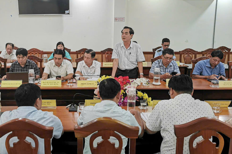 Ảnh: Lãnh đạo phòng Tài nguyên và Môi trường thành phố Rạch Giá phát biểu về giải pháp đẩy nhanh tiến độ giải quyết thủ tục hành chính trên lĩnh vực nhà ở và đất đai trên địa bàn thành phố
